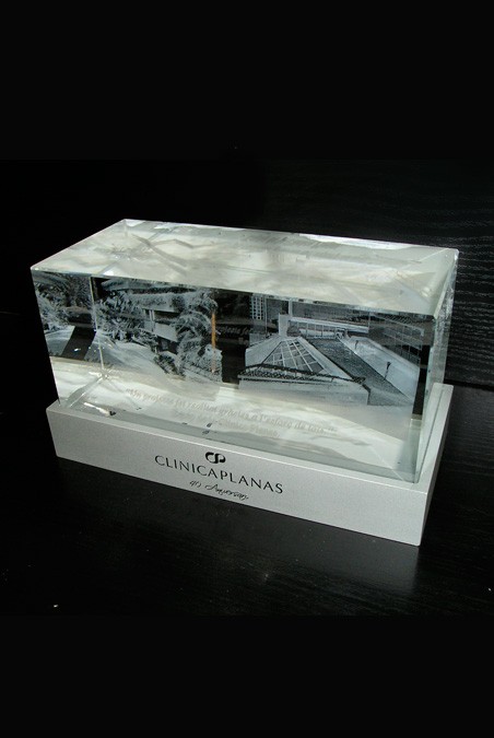 Bloc de vidre òptic amb gravat interior en 3D.