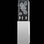 Guardó realitzat totalment en alumini, el cos principal posicionat en una lleugera inclinació, es una combinació d’acabat en plata brillant amb acabat en mate, formant el logotip de l’empresa.