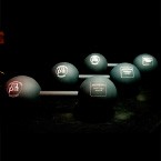 Guardó conceptual realitzat completament en alumini i consistent en dos esferes massisses (però rebaixades de pes imperceptiblement) unides per un eix, tot anoditzat en negre. Gravat natural fet en profunditat.