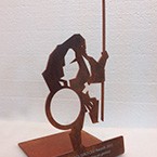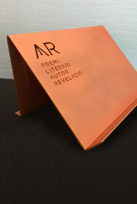 Trofeu funcional tipus faristol realitzat en xapa d’alumini amb troquelat de logo i acabat amb color coure.